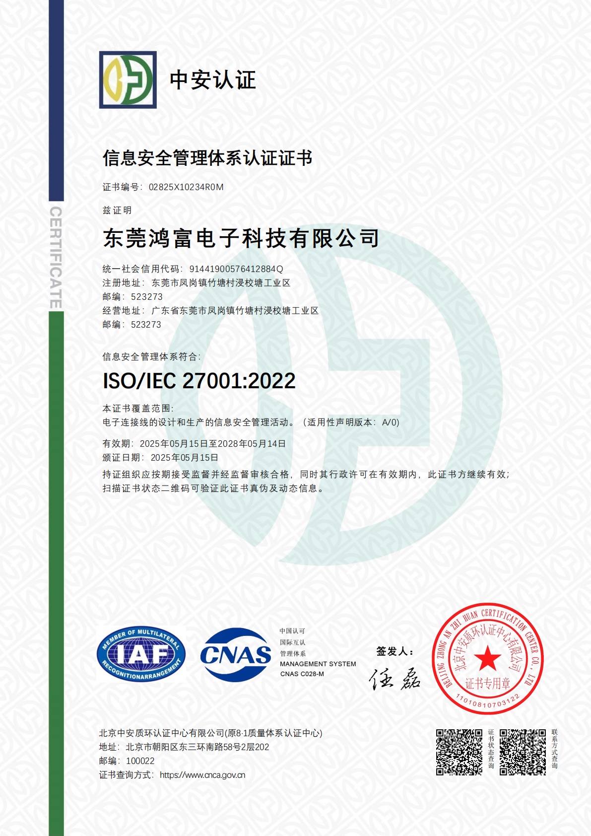 东莞鸿富电子科技有限公司IS初审